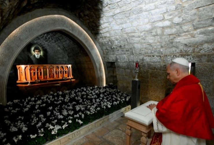 Per la prima volta nella storia un Papa si reca a pregare sulla tomba di San Charbel
